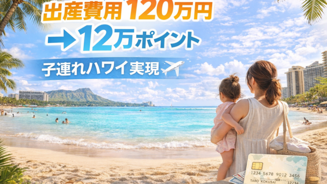 出産費用120万円をクレジットカードで支払い、12万ポイントを獲得。実際にANAマイルとマリオットポイントで子連れハワイ旅行に行った体験と、誰でもできる再現方法・注意点を解説します。